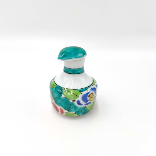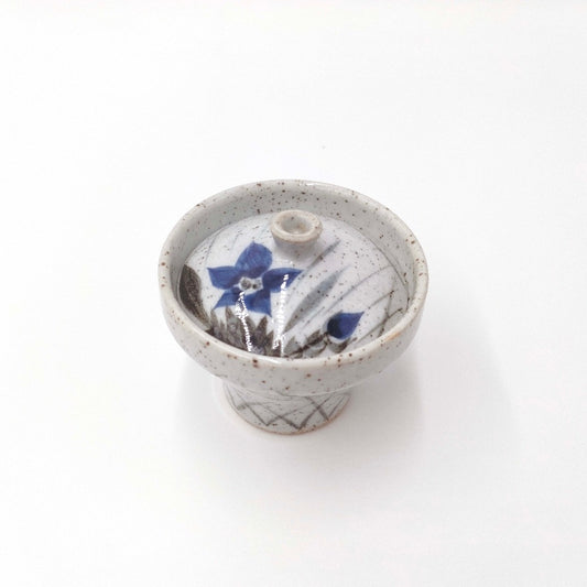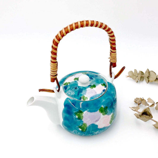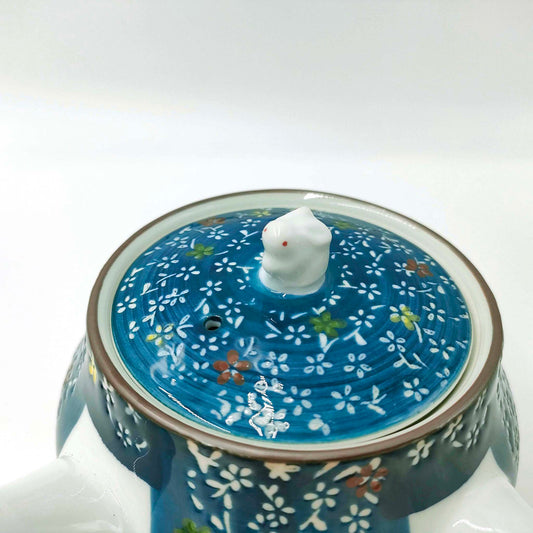 Yokode Kyūsu Teapot - Blue with floral motif and bunny knob