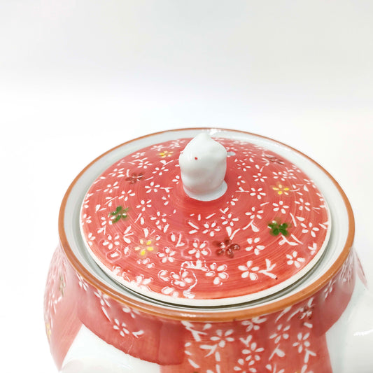 Yokode Kyūsu Teapot - Red with floral motif and bunny knob