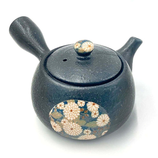Yokode Kyusu teapot - Black with floral motif