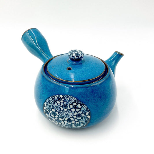 Yokode Kyusu teapot - Blue with floral motif